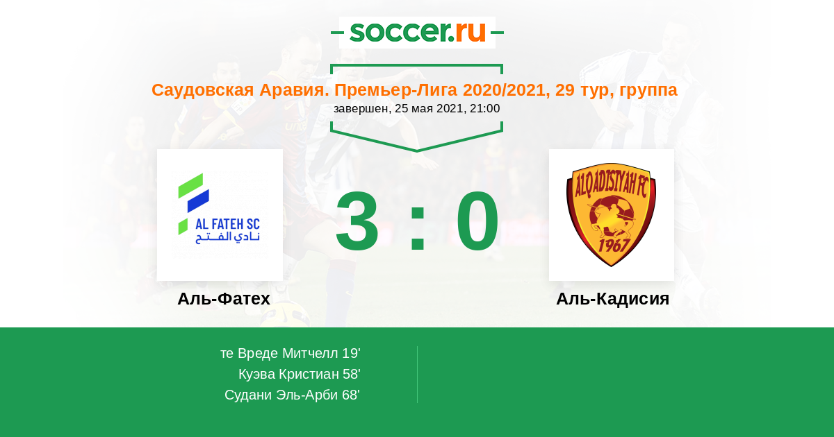 Саудовская Аравия. Премьер-Лига 19.01.2021 Аль-Кадисия Логотип футбольный клуб Аль-Кадисия (Эль-Хубар) 1:1 Логотип футбольный клуб Аль-Фатех (Эль-Хаса) Аль-Фатех