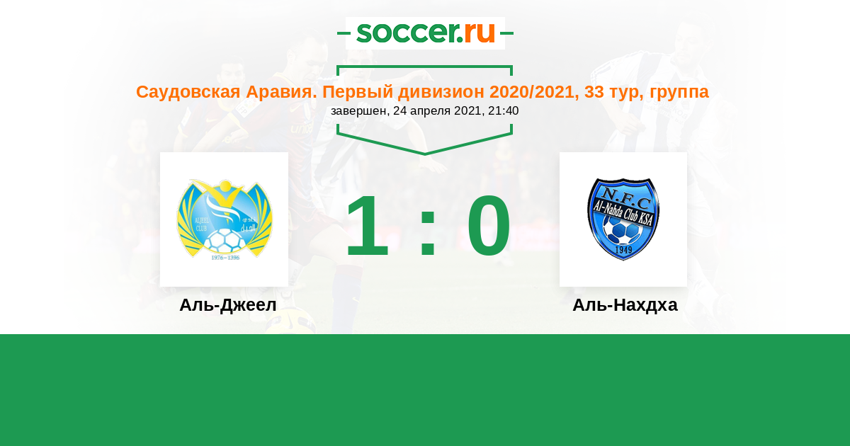 Саудовская Аравия. Первый дивизион 06.01.2021 Аль-Нахдха Логотип футбольный клуб Аль-Нахдха (Эд-Даммам) 2:0 Логотип футбольный клуб Аль-Джеел (Аль-Хаса) Аль-Джеел
