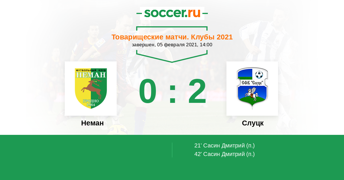 Товарищеские матчи. Клубы 22.02.2023 Неман Логотип футбольный клуб Неман (Гродно) 2:0 Логотип футбольный клуб Слуцк Слуцк