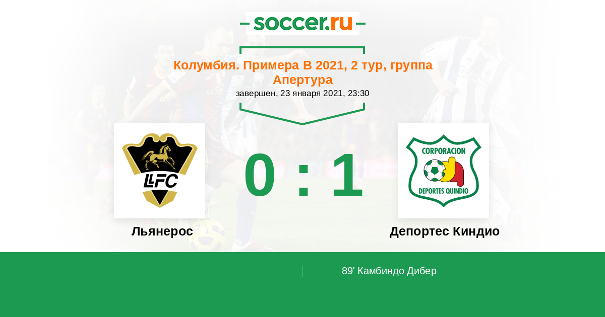 Колумбия. Примера B 14.10.2019 Льянерос Логотип футбольный клуб Льянерос (Вильявисенсио) 0:1 Логотип футбольный клуб Депортес Киндио (Армения) Депортес Киндио