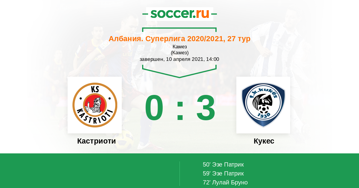 Албания. Суперлига 07.02.2021 Кукес Логотип футбольный клуб Кукес 0:1 Логотип футбольный клуб Кастриоти (Круже) Кастриоти