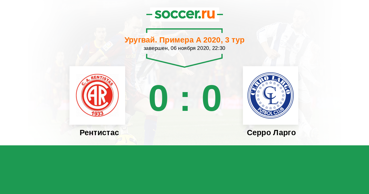 Уругвай. Примера A 16.08.2020 Серро Ларго Логотип футбольный клуб Серро Ларго (Мело) 1:1 Логотип футбольный клуб Рентистас (Монтевидео) Рентистас