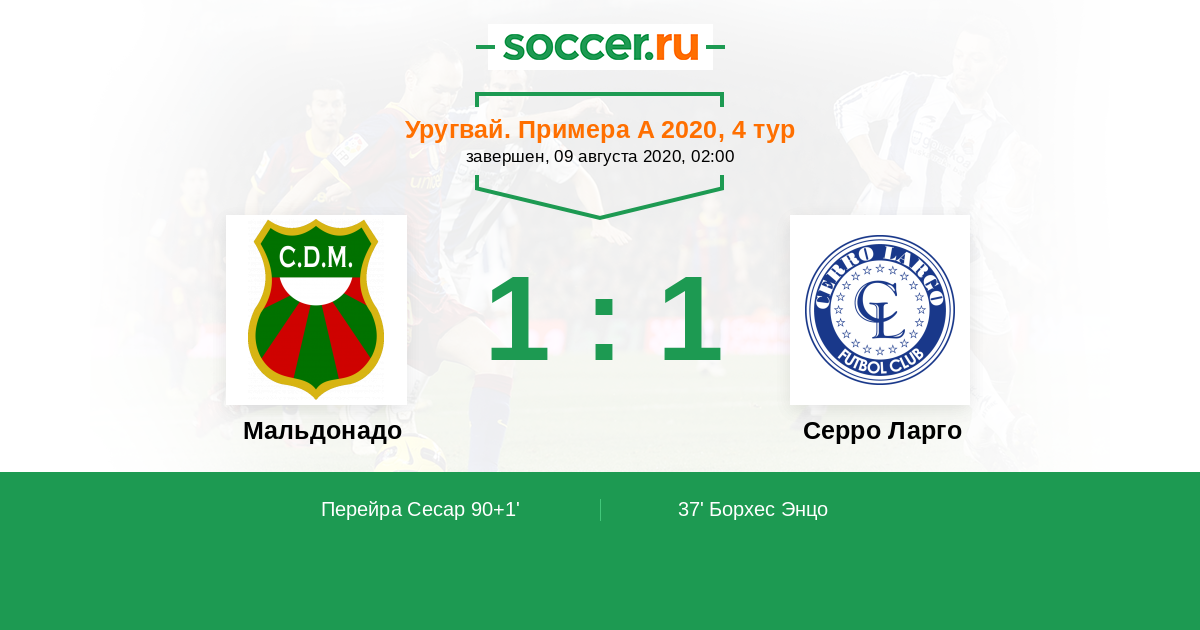 Уругвай. Примера A 13.06.2021 Мальдонадо Логотип футбольный клуб Мальдонадо 2:1 Логотип футбольный клуб Серро Ларго (Мело) Серро Ларго