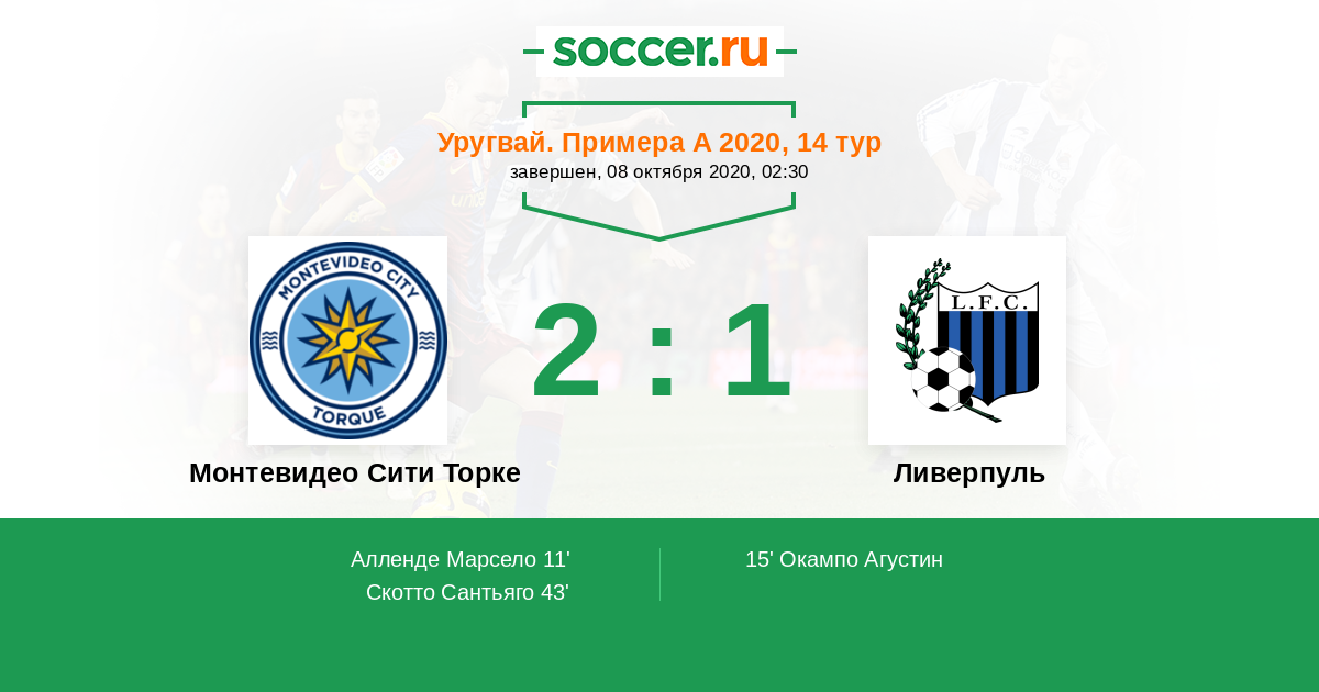 Уругвай. Примера A 12.11.2020 Ливерпуль Логотип футбольный клуб Ливерпуль (Монтевидео) 2:2 Логотип футбольный клуб Монтевидео Сити Торке Монтевидео Сити Торке