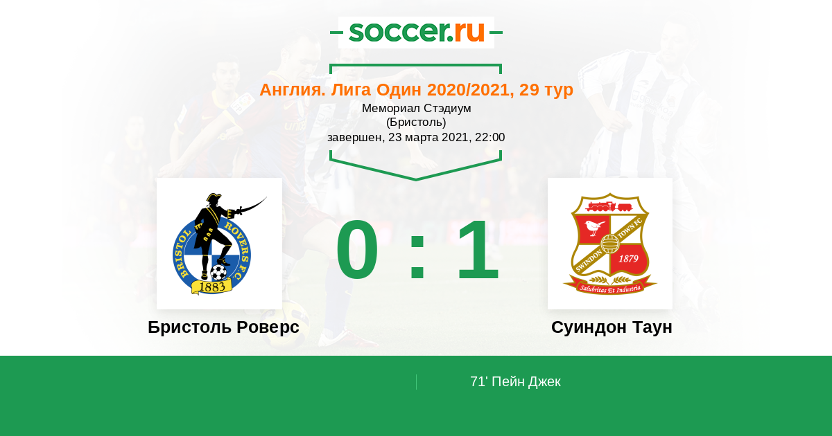 Англия. Первая Футбольная Лига 21.11.2020 Суиндон Таун Логотип футбольный клуб Суиндон Таун 1:0 Логотип футбольный клуб Бристоль Роверс Бристоль Роверс