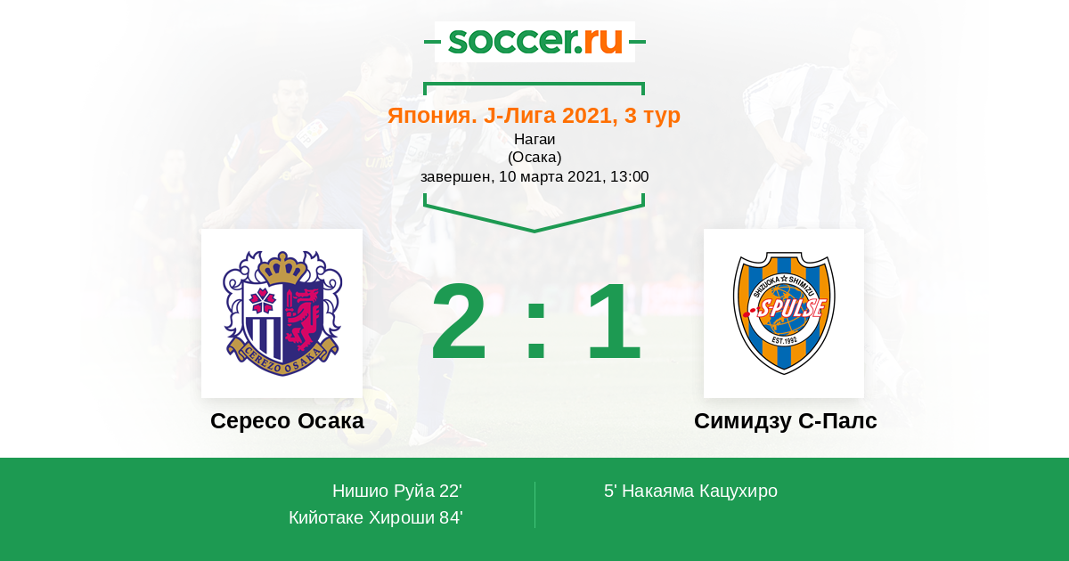 Япония. J-Лига 1 12.03.2022 Симидзу С-Палс Логотип футбольный клуб Симидзу С-Палс 1:3 Логотип футбольный клуб Сересо Осака Сересо Осака