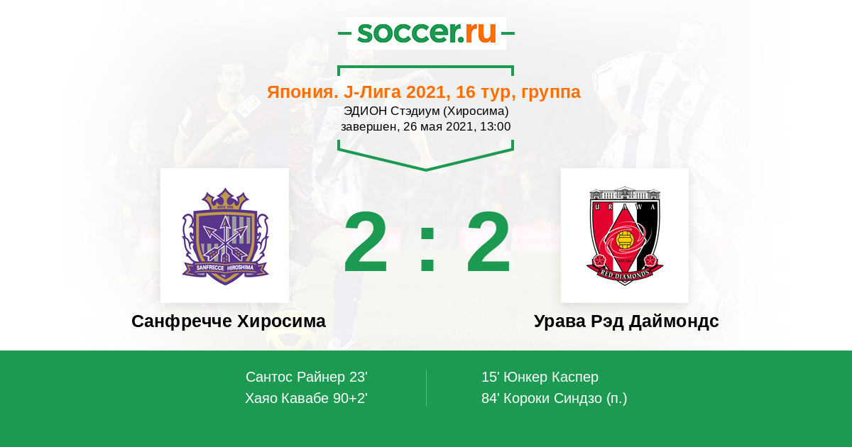 Япония. J-Лига 1 13.05.2022 Урава Рэд Даймондс Логотип футбольный клуб Урава Рэд Даймондс (Сайтама) 0:0 Логотип футбольный клуб Санфречче Хиросима Санфречче Хиросима