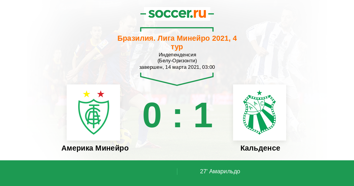 Бразилия. Лига Минейро 24.02.2013 Америка Минейро Логотип футбольный клуб Америка Минейро (Белу-Оризонти) 1:0 Логотип футбольный клуб Кальденсе (Посус-ди-Кальдас) Кальденсе
