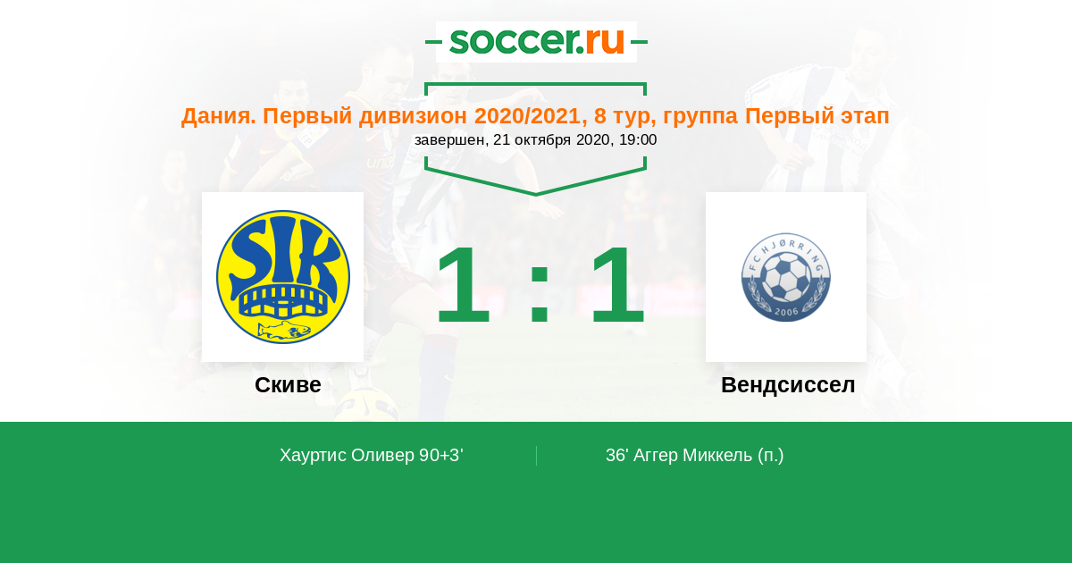 Дания. Первый дивизион 11.04.2021 Вендсиссел Логотип футбольный клуб Вендсиссел (Йерринг) 1:1 Логотип футбольный клуб Скиве Скиве