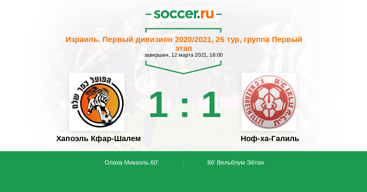Матчи Израиль. Первый дивизион 2020/2021