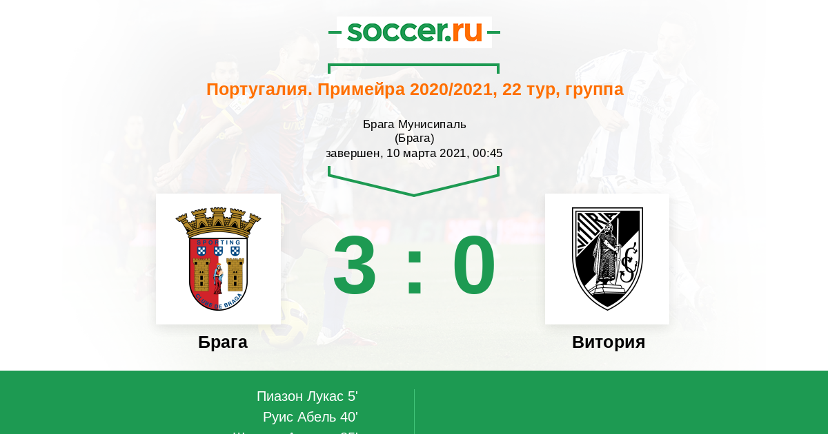 Португалия. Примейра 02.04.2010 Брага Логотип футбольный клуб Брага 3:2 Логотип футбольный клуб Витория (Гимараеш) Витория
