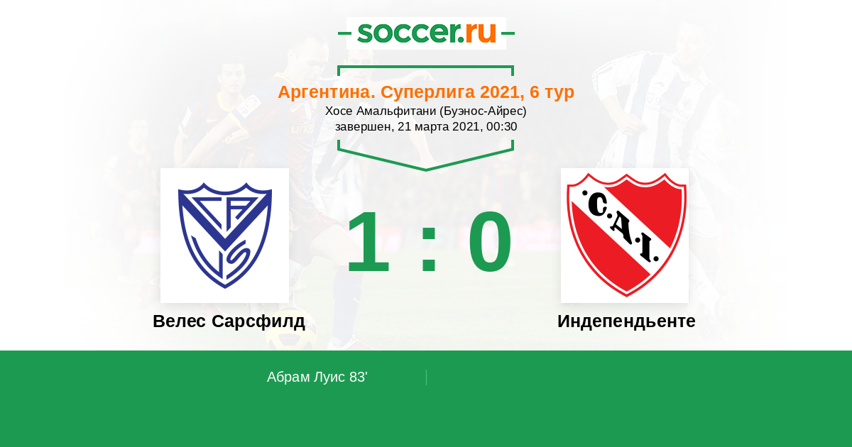Аргентина. Суперлига 01.04.2017 Индепендьенте Логотип футбольный клуб Индепендьенте (Авельянеда) 1:1 Логотип футбольный клуб Велес Сарсфилд (Буэнос-Айрес) Велес Сарсфилд