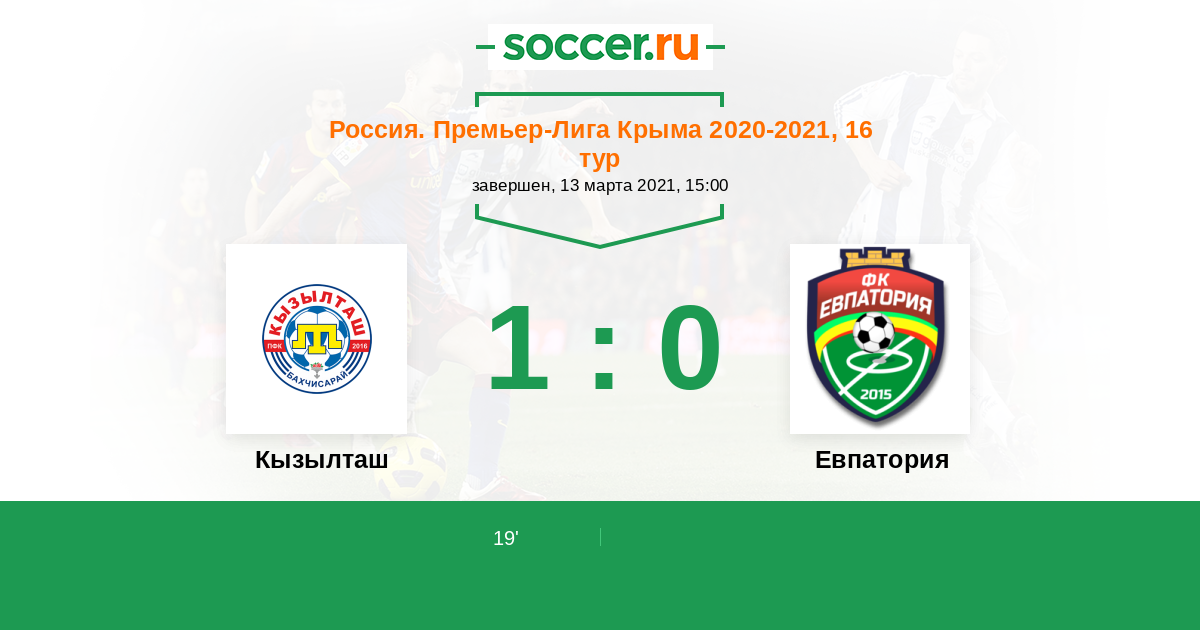 Россия. Премьер-Лига Крыма 31.08.2019 Евпатория Логотип футбольный клуб Евпатория 1:0 Логотип футбольный клуб Кызылташ (Бахчисарай) Кызылташ