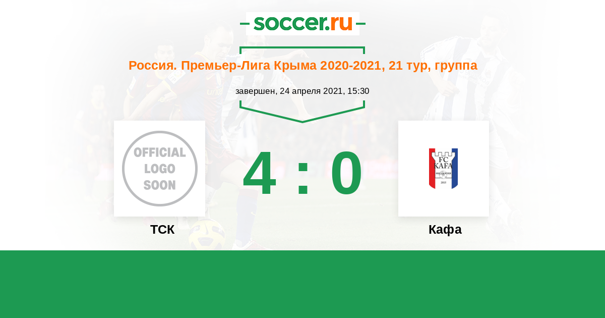 Россия. Премьер-Лига Крыма 24.04.2021 ТСК Логотип футбольный клуб ТСК (Симферополь) 4:0 Логотип футбольный клуб Кафа (Феодосия) Кафа