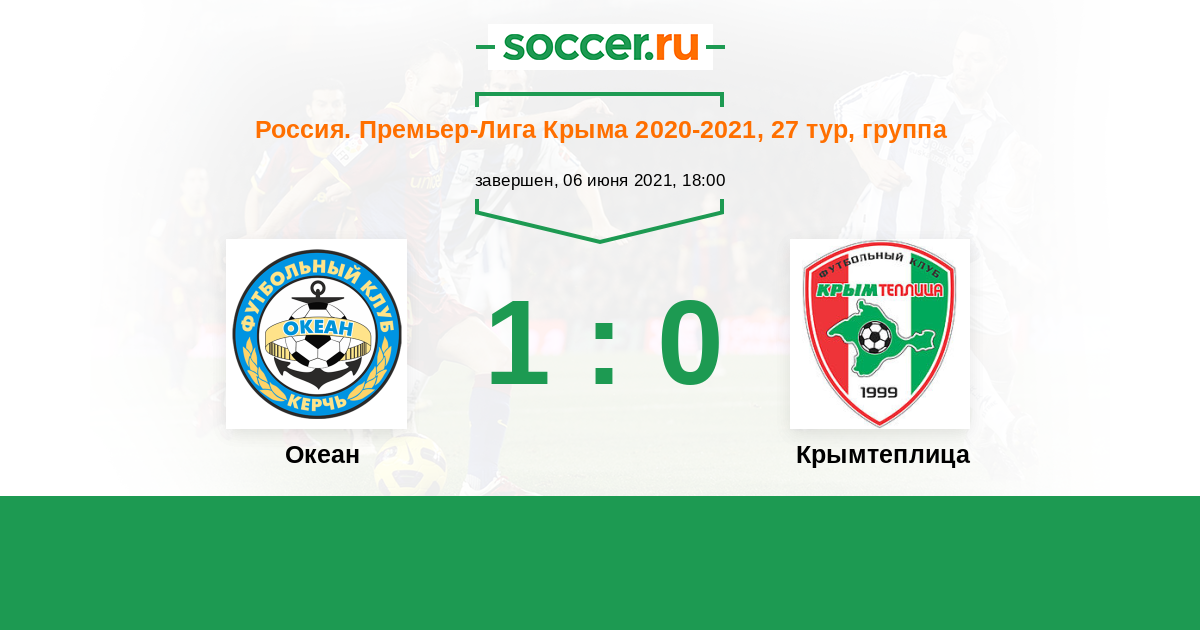 Россия. Премьер-Лига Крыма 06.06.2021 Океан Логотип футбольный клуб Океан (Керчь) 1:0 Логотип футбольный клуб Крымтеплица (Молодежное) Крымтеплица