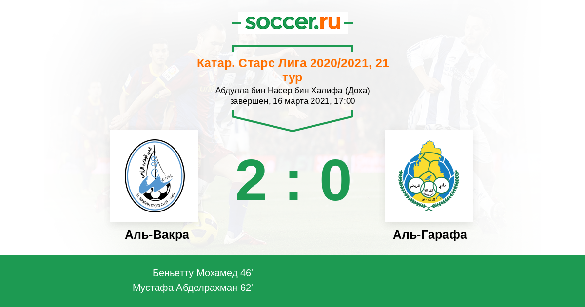 Катар. Старс Лига 18.02.2012 Аль-Гарафа Логотип футбольный клуб Аль-Гарафа (Доха) 2:1 Логотип футбольный клуб Аль-Вакра Аль-Вакра