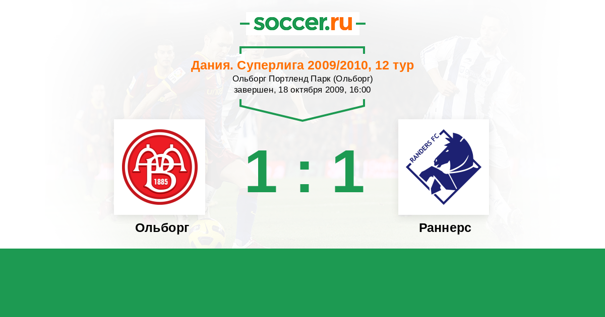 Дания. Суперлига 14.09.2009 Раннерс Логотип футбольный клуб Раннерс 0:3 Логотип футбольный клуб Ольборг Ольборг