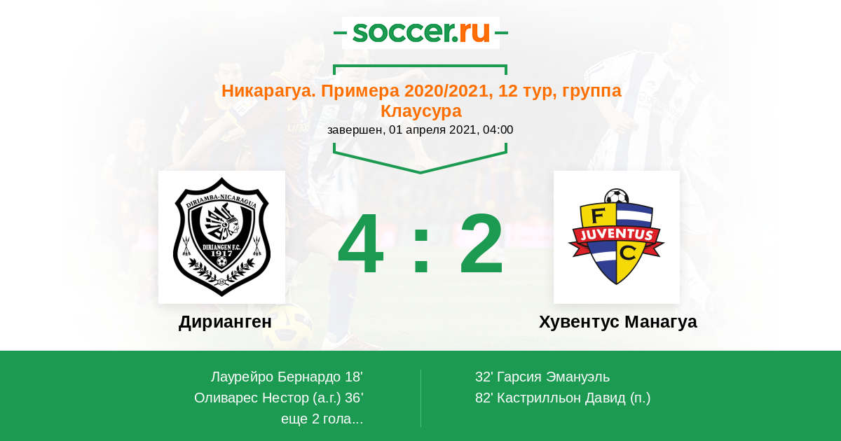Никарагуа. Примера 31.01.2021 Хувентус Манагуа Логотип футбольный клуб Хувентус Манагуа 1:0 Логотип футбольный клуб Дирианген (Дириамба) Дирианген