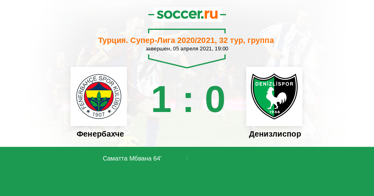 Турция. Суперлига 06.12.2020 Денизлиспор Логотип футбольный клуб Денизлиспор 0:2 Логотип футбольный клуб Фенербахче (Стамбул) Фенербахче