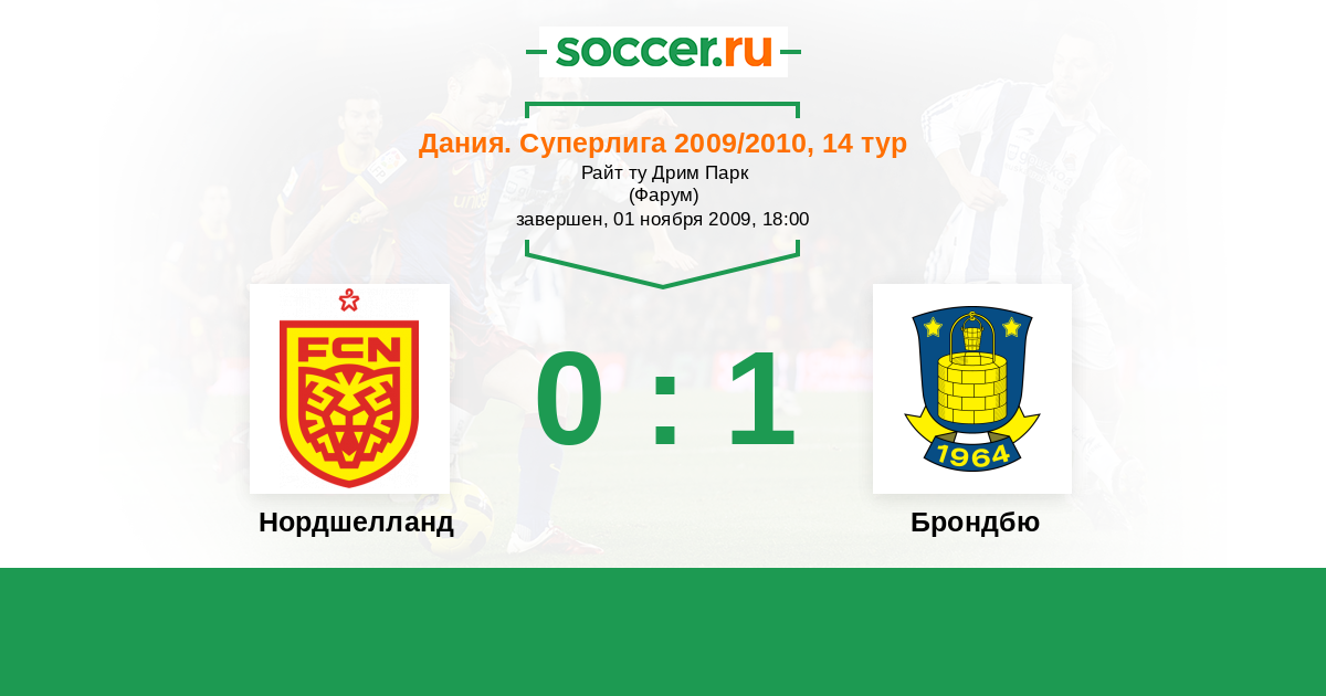 Дания. Суперлига 17.10.2010 Нордшелланд Логотип футбольный клуб Нордшелланд (Фарум) 1:1 Логотип футбольный клуб Брондбю (Брённбю) Брондбю