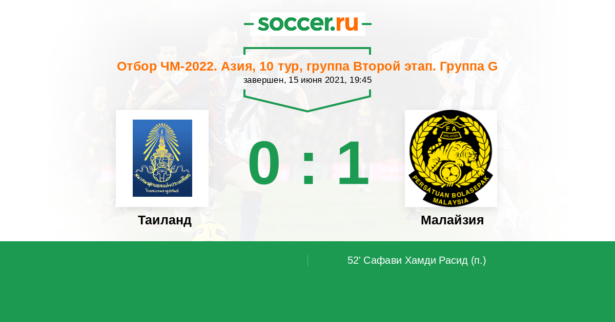 Отбор ЧМ. Азия 14.11.2019 Малайзия Логотип Малайзия 2:1 Логотип Таиланд Таиланд