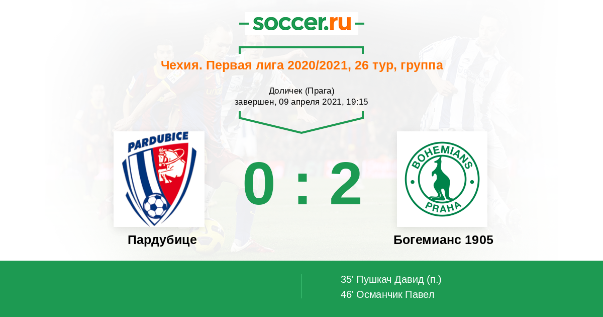 Чехия. Первая Лига 21.08.2021 Пардубице Логотип футбольный клуб Пардубице 3:0 Логотип футбольный клуб Богемианс 1905 (Прага) Богемианс 1905
