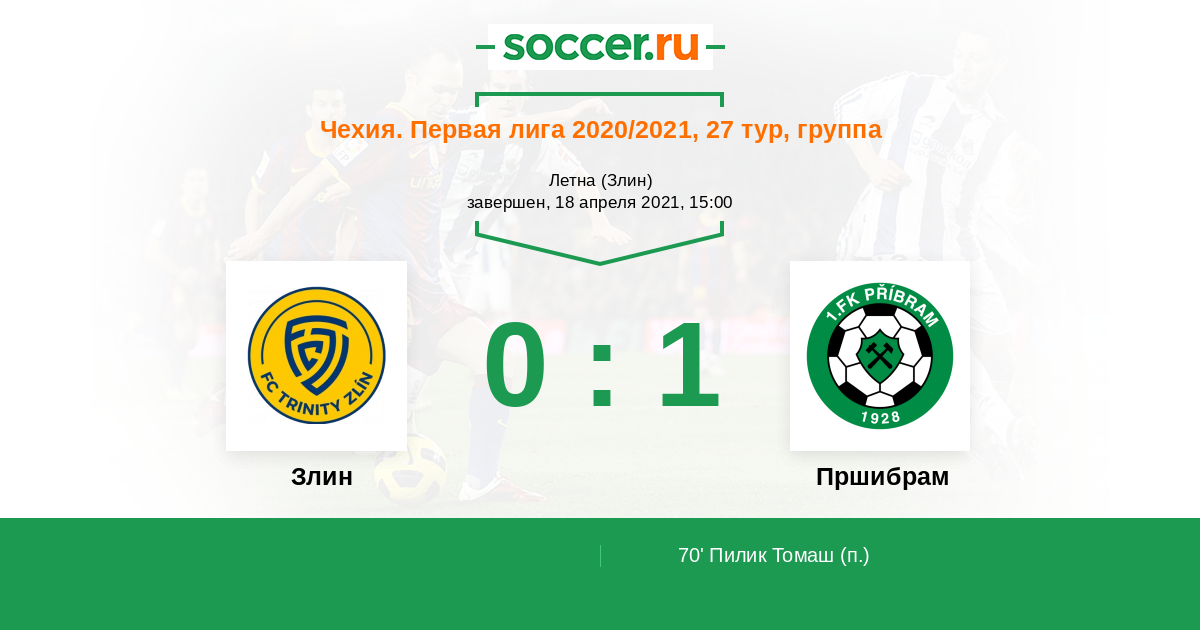 Чехия. Первая Лига 12.12.2020 Пршибрам Логотип футбольный клуб Пршибрам 1:0 Логотип футбольный клуб Злин Злин