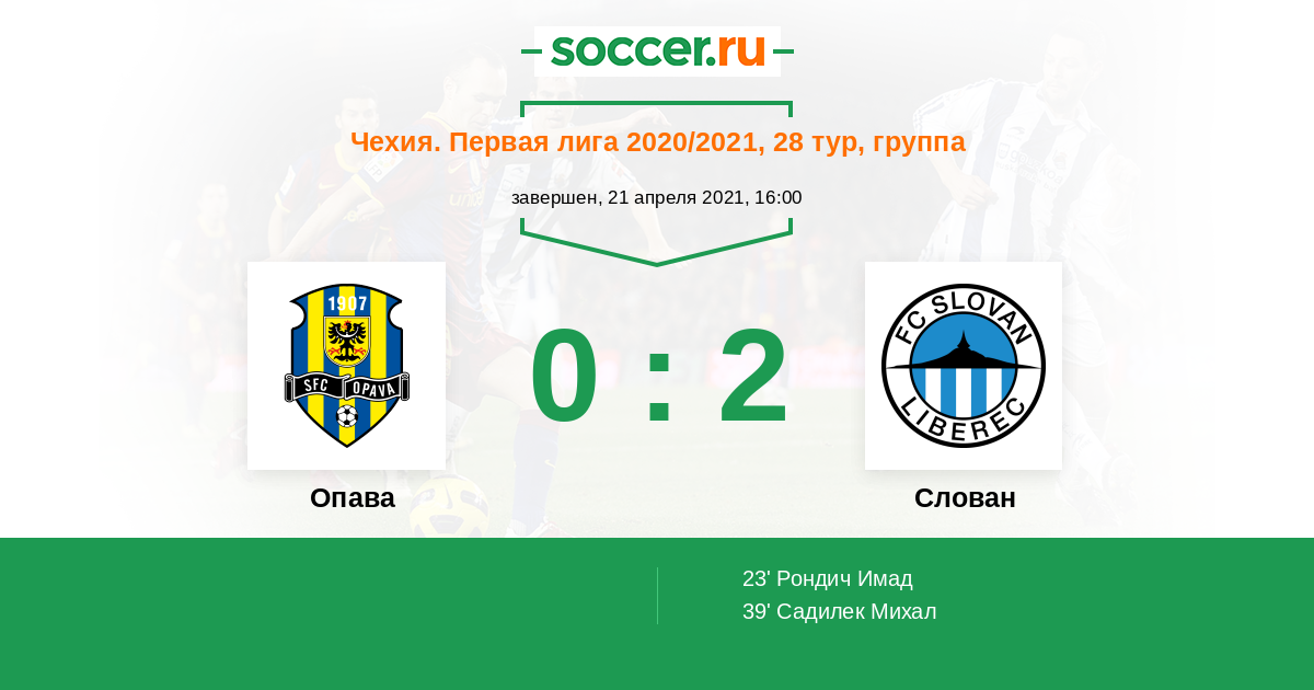 Чехия. Первая Лига 16.12.2020 Слован Логотип футбольный клуб Слован (Либерец) 2:0 Логотип футбольный клуб Опава Опава