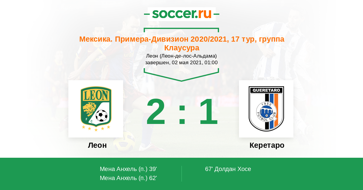 Мексика. Примера-Дивизион 11.02.2017 Керетаро Логотип футбольный клуб Керетаро (Сантьяго-де-Керетаро) 2:1 Логотип футбольный клуб Леон Леон