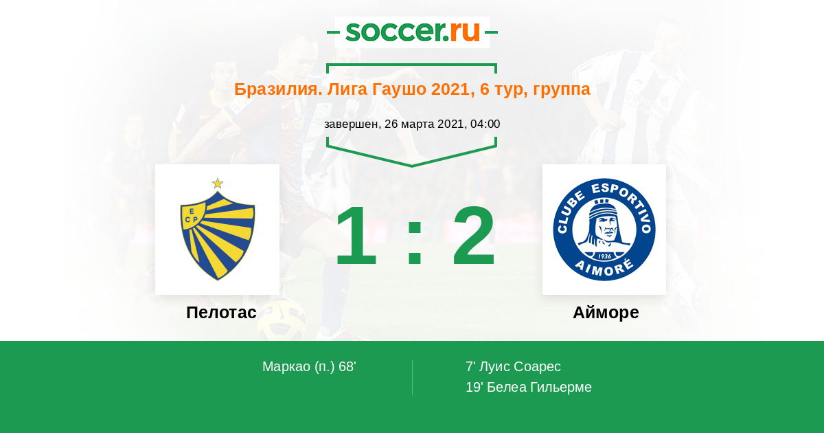 Бразилия. Гаушо 2 17.03.2018 Пелотас Логотип футбольный клуб Пелотас 2:1 Логотип футбольный клуб Айморе (Сан-Леополду) Айморе