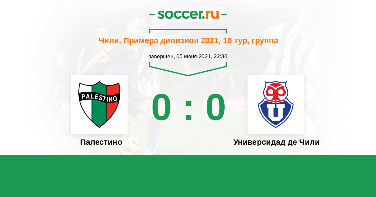 Чили. Примера дивизион 30.08.2020 Палестино Логотип футбольный клуб Палестино (Сантьяго) 2:2 Логотип футбольный клуб Универсидад де Чили (Сантьяго) Универсидад де Чили