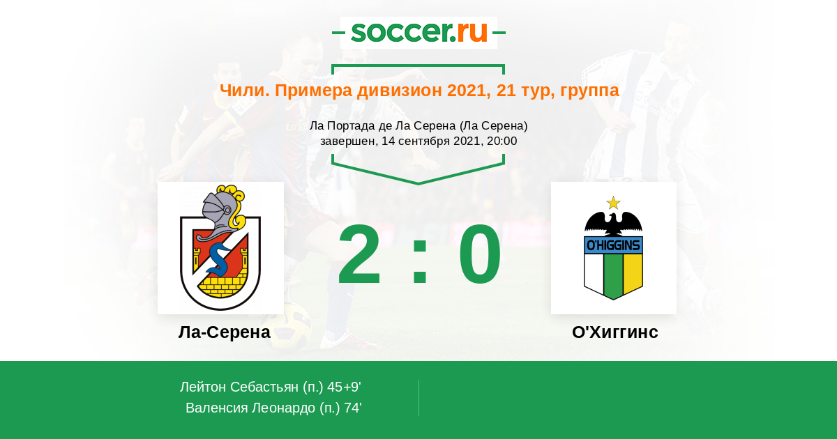 Чили. Примера дивизион 05.09.2020 Ла-Серена Логотип футбольный клуб Ла-Серена 1:1 Логотип футбольный клуб О'Хиггинс (Ранкагуа) О'Хиггинс