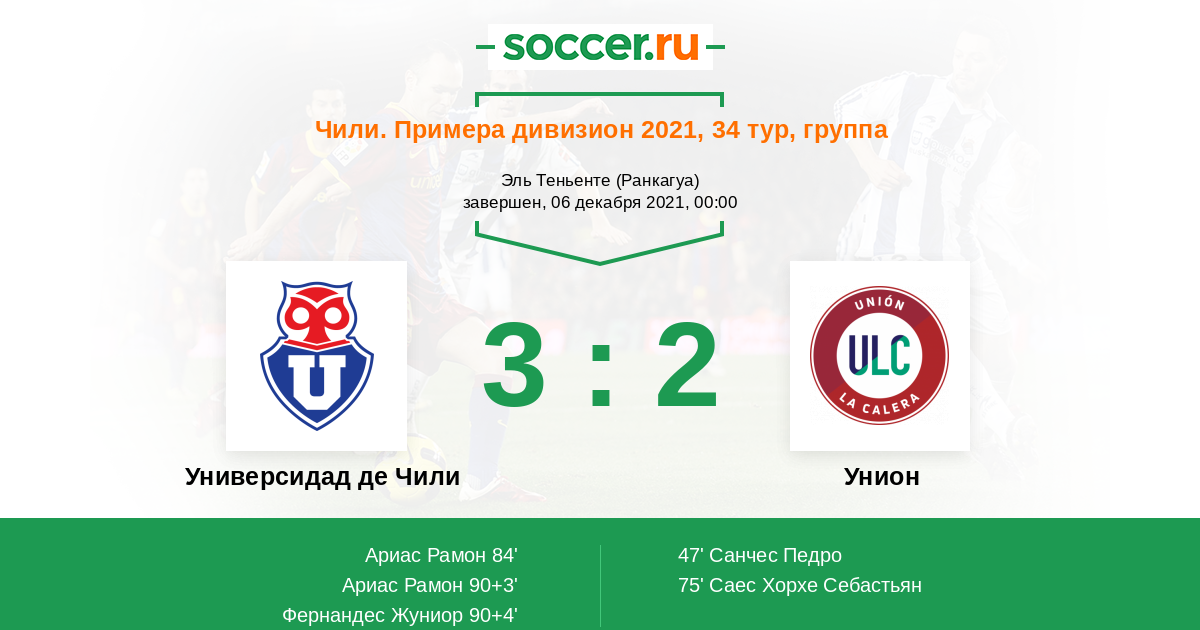 Чили. Примера дивизион 22.08.2021 Унион Логотип футбольный клуб Унион (Ла Калера) 1:4 Логотип футбольный клуб Универсидад де Чили (Сантьяго) Универсидад де Чили