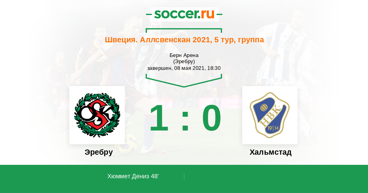 Швеция. Аллсвенскан 06.06.2015 Эребру Логотип футбольный клуб Эребру 1:1 Логотип футбольный клуб Хальмстад Хальмстад