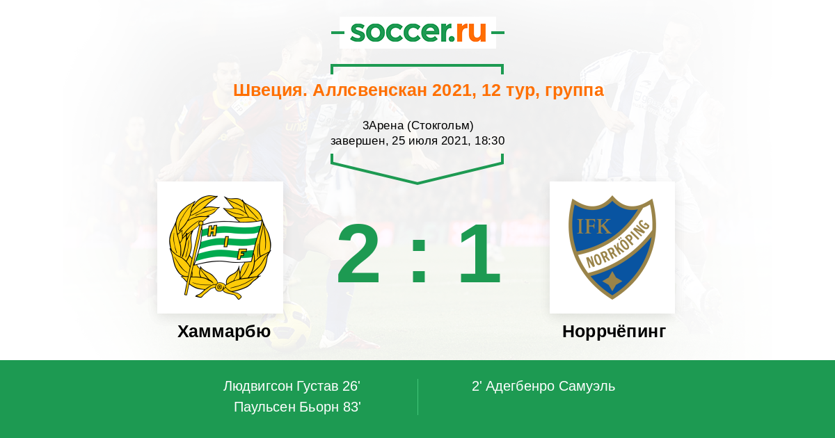 Швеция. Аллсвенскан 30.07.2023 Хаммарбю Логотип футбольный клуб Хаммарбю (Стокгольм) 2:1 Логотип футбольный клуб Норрчёпинг Норрчёпинг