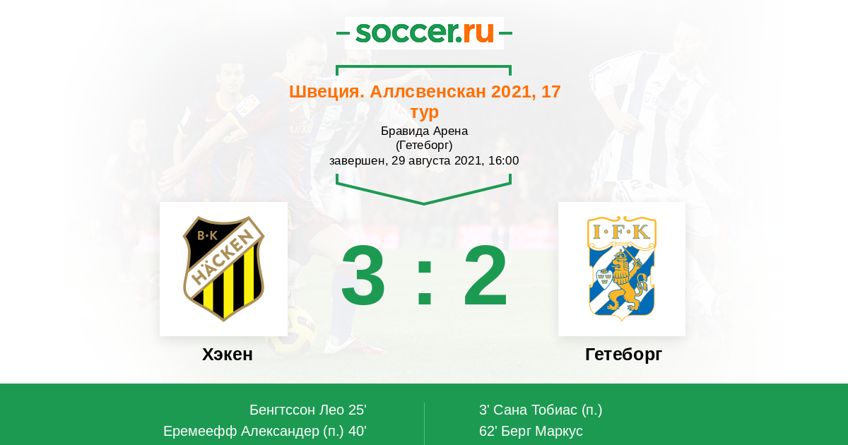 Швеция. Аллсвенскан 20.08.2017 Гетеборг Логотип футбольный клуб Гетеборг 1:1 Логотип футбольный клуб Хэкен (Гетеборг) Хэкен