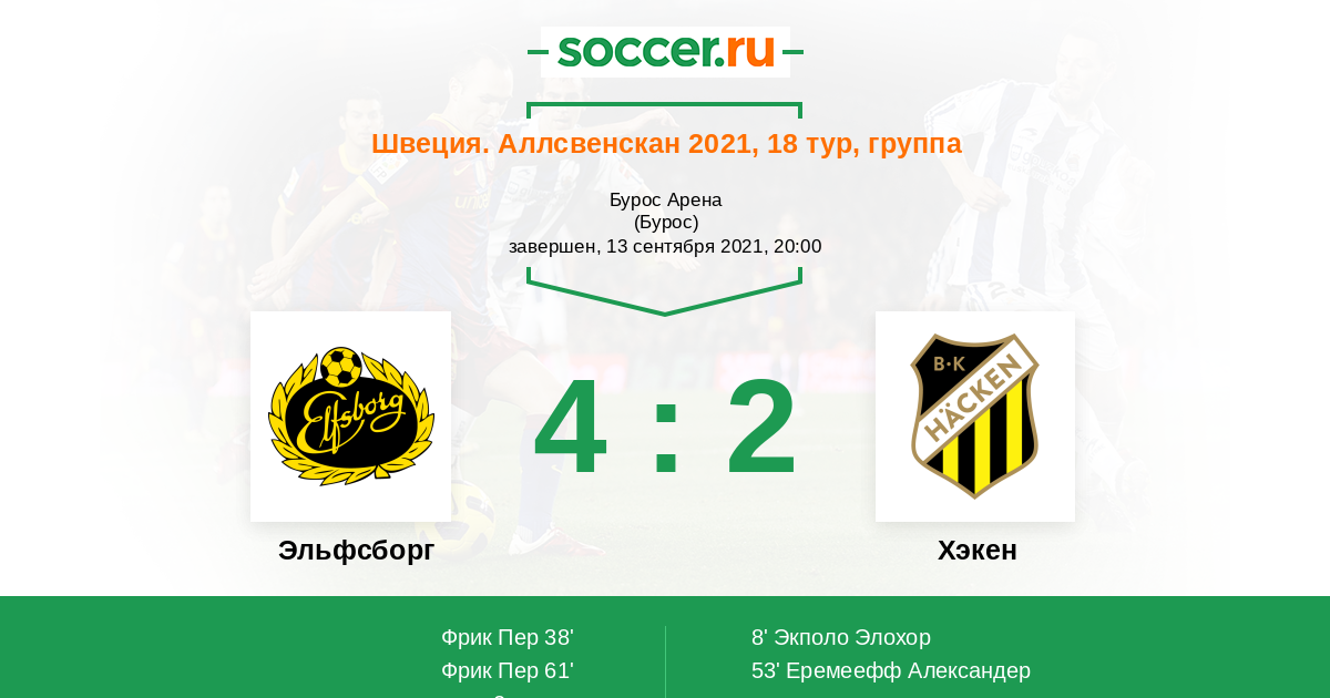 Швеция. Аллсвенскан 16.09.2017 Хэкен Логотип футбольный клуб Хэкен (Гетеборг) 3:0 Логотип футбольный клуб Эльфсборг (Бурос) Эльфсборг