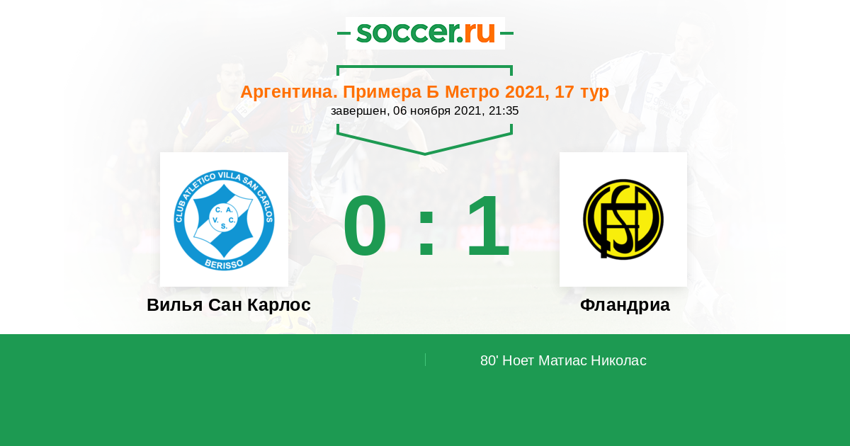 Аргентина. Примера Б Метро 09.07.2021 Фландриа Логотип футбольный клуб Фландриа (Лухан) 1:0 Логотип футбольный клуб Вилья Сан Карлос (Берисо) Вилья Сан Карлос