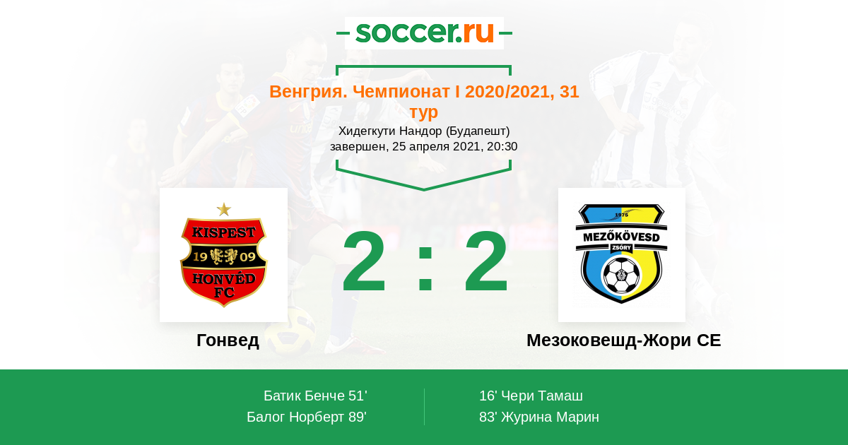 Венгрия. Кубок 03.06.2020 Гонвед Логотип футбольный клуб Гонвед (Будапешт) 2:1 Логотип футбольный клуб Мезоковешд-Жори СЕ Мезоковешд-Жори СЕ