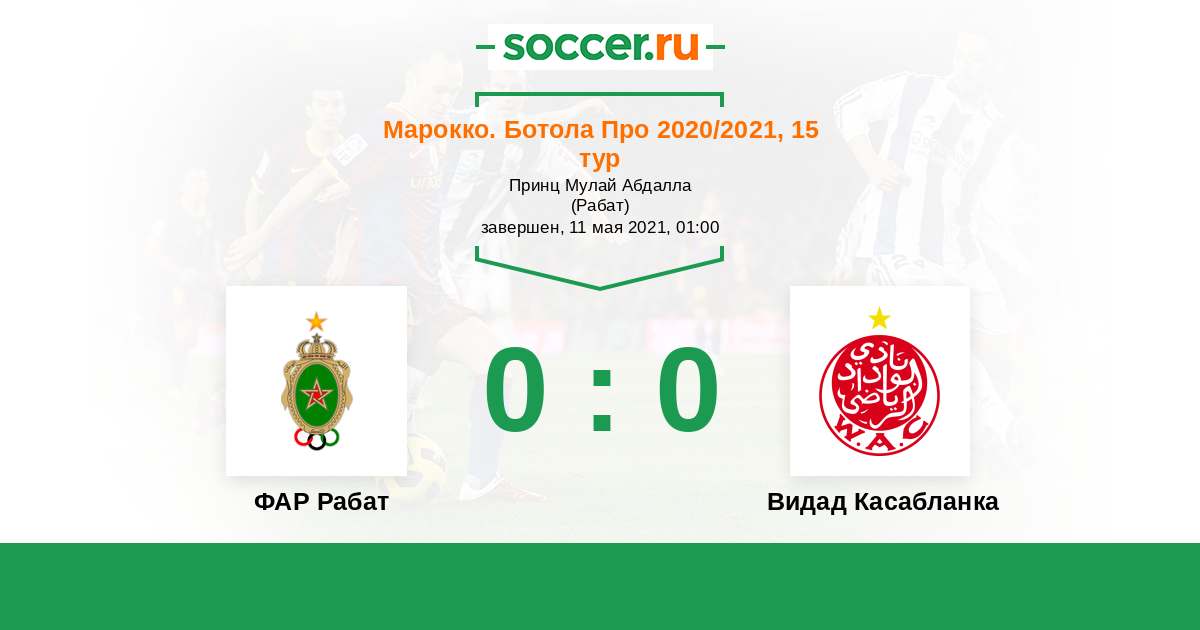 Марокко. Ботола Про 28.07.2021 Видад Касабланка Логотип футбольный клуб Видад Касабланка 2:0 Логотип футбольный клуб ФАР Рабат ФАР Рабат