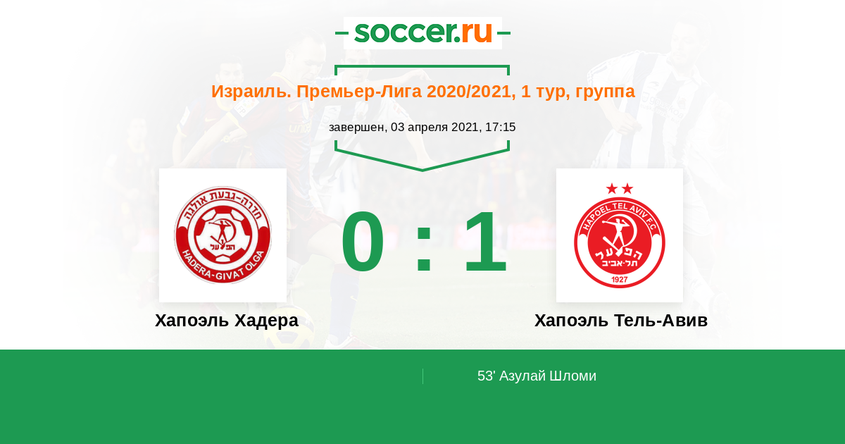 Израиль. Премьер-Лига 23.10.2021 Хапоэль Хадера Логотип футбольный клуб Хапоэль Хадера 0:3 Логотип футбольный клуб Хапоэль Тель-Авив Хапоэль Тель-Авив