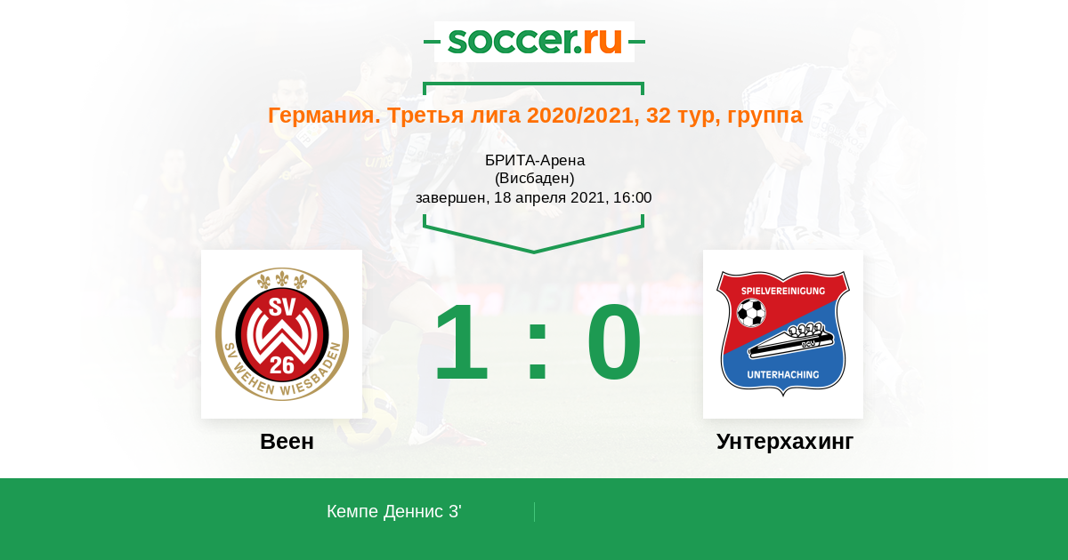 Германия. Третья лига 19.04.2025 Веен Логотип футбольный клуб Веен (Висбаден) 3:0 Логотип футбольный клуб Унтерхахинг Унтерхахинг