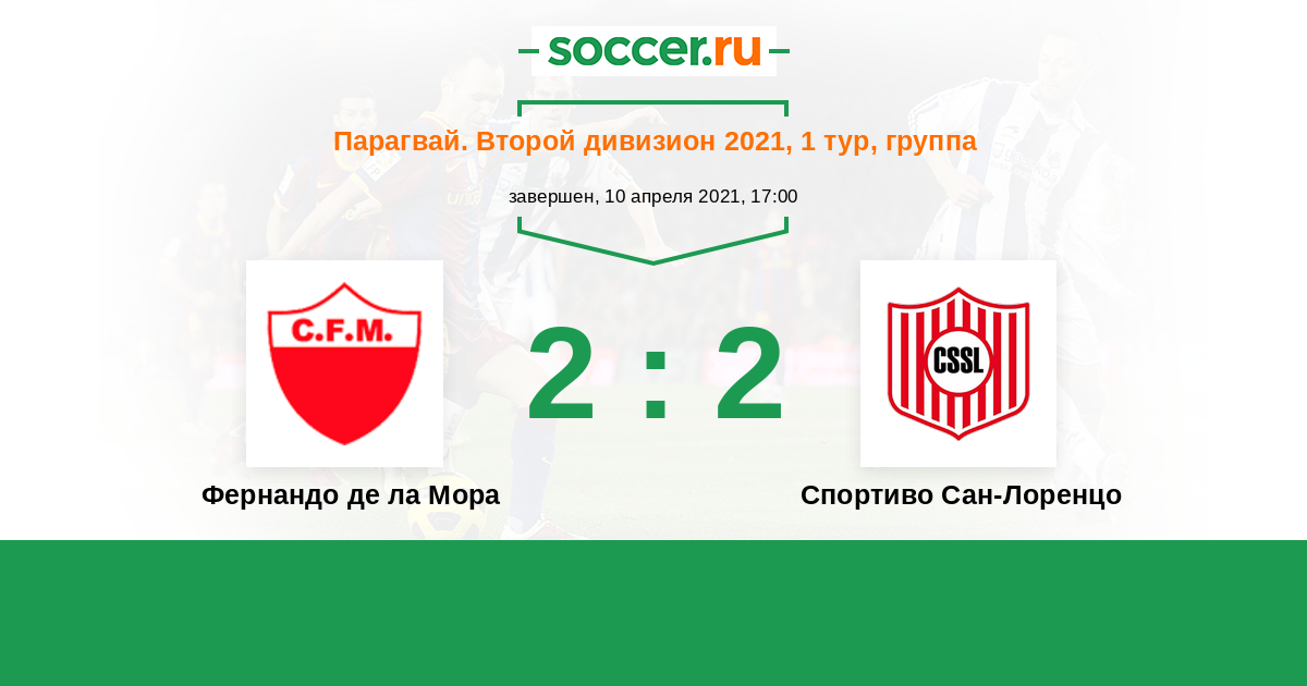 Парагвай. Второй дивизион 17.07.2021 Спортиво Сан-Лоренцо Логотип футбольный клуб Спортиво Сан-Лоренцо 1:3 Логотип футбольный клуб Фернандо де ла Мора Фернандо де ла Мора