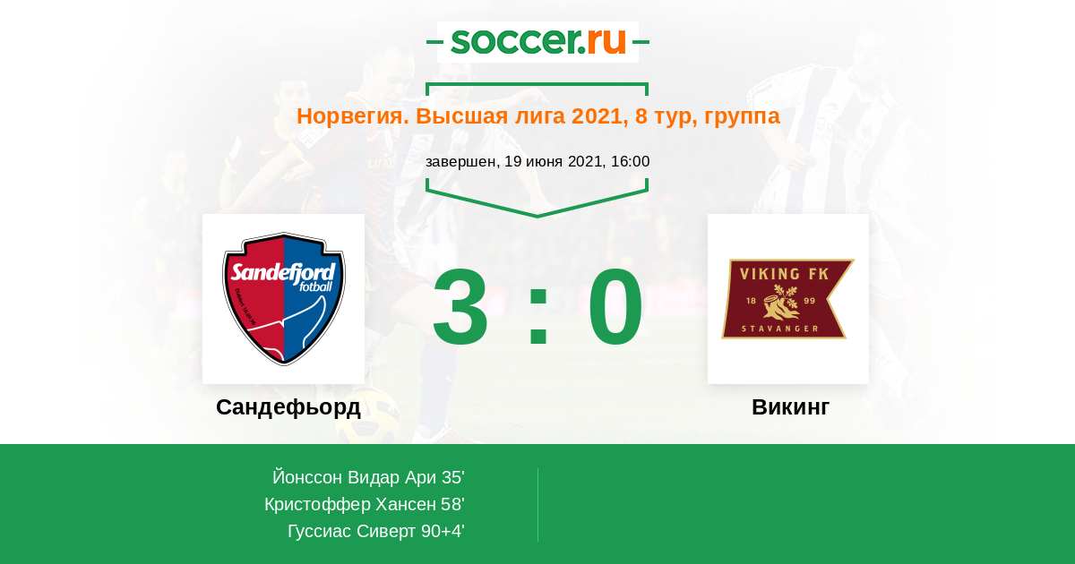 Норвегия. Высшая лига 02.10.2021 Викинг Логотип футбольный клуб Викинг (Ставангер) 2:1 Логотип футбольный клуб Сандефьорд Сандефьорд