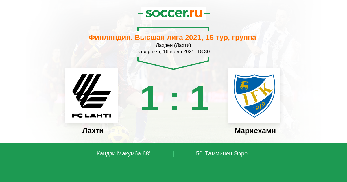 Финляндия. Высшая лига 22.06.2015 Лахти Логотип футбольный клуб Лахти 0:0 Логотип футбольный клуб Мариехамн Мариехамн