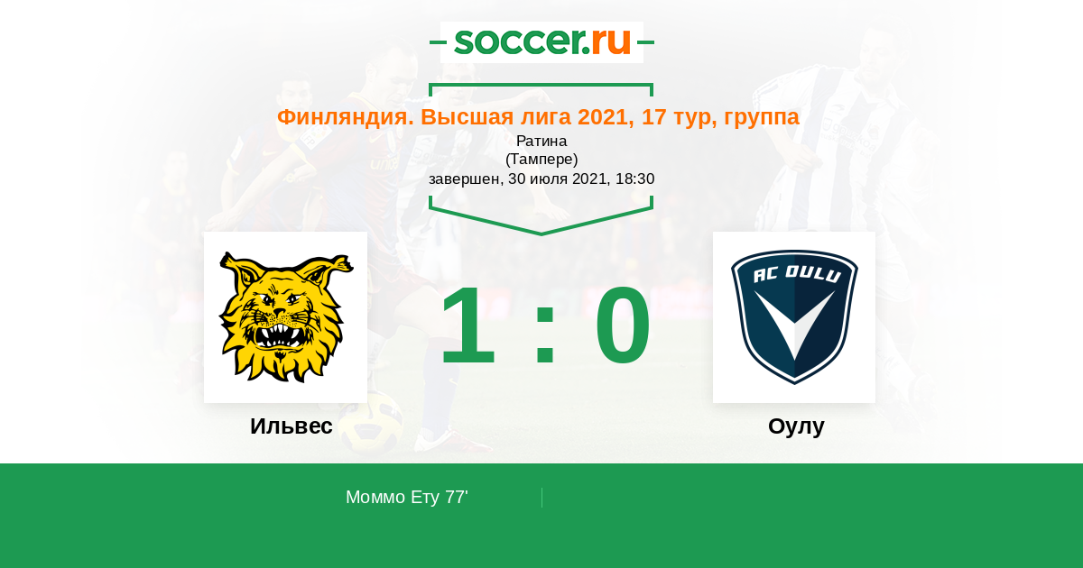 Финляндия. Высшая лига 11.07.2022 Ильвес Логотип футбольный клуб Ильвес (Тампере) 0:2 Логотип футбольный клуб Оулу Оулу