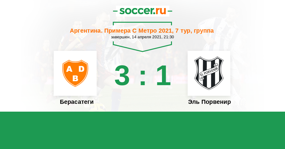 Аргентина. Примера С Метро 06.04.2019 Берасатеги Логотип футбольный клуб Берасатеги (Буэнос-Айрес) 1:1 Логотип футбольный клуб Эль Порвенир (Буэнос-Айрес) Эль Порвенир