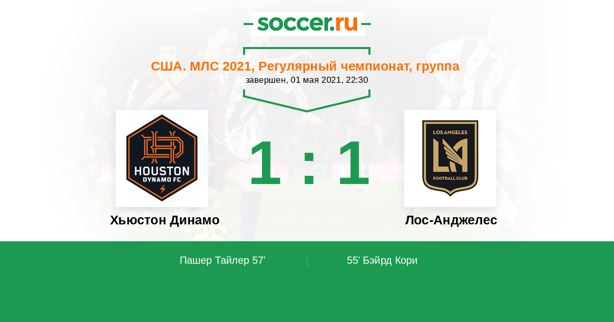 США. МЛС 20.06.2021 Лос-Анджелес Логотип футбольный клуб Лос-Анджелес 1:1 Логотип футбольный клуб Хьюстон Динамо Хьюстон Динамо