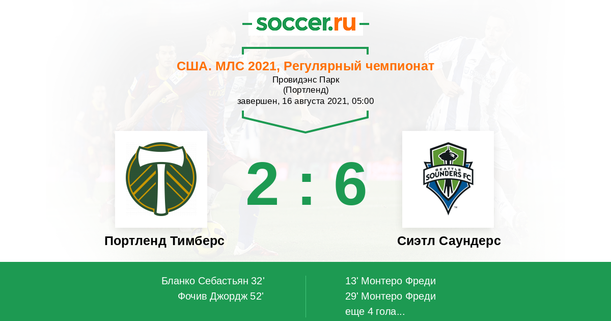 США. МЛС 30.08.2021 Сиэтл Саундерс Логотип футбольный клуб Сиэтл Саундерс 0:2 Логотип футбольный клуб Портленд Тимберс Портленд Тимберс