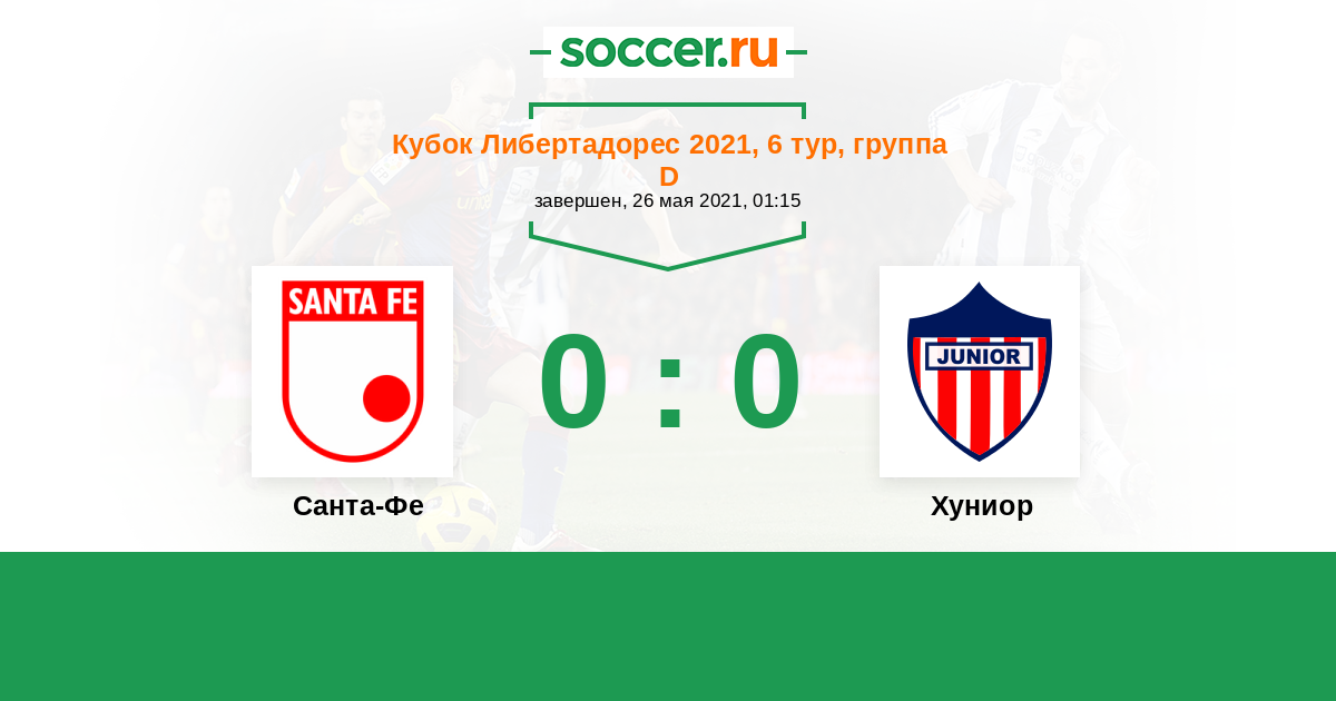 Кубок Либертадорес 23.04.2021 Хуниор Логотип футбольный клуб Хуниор (Барранкилья) 1:1 Логотип футбольный клуб Санта-Фе (Богота) Санта-Фе
